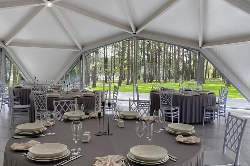 В усадьбе "Белавичи Парк" мы создали уникальную конструкцию, в форме хексагональной площади площадью 260 м², предназначенную для организации ресторанов и банкетов. Наш проект спроектирован с особым акцентом на атмосферу и функциональность, предоставляя удивительное пространство для гастрономических и культурных мероприятий.